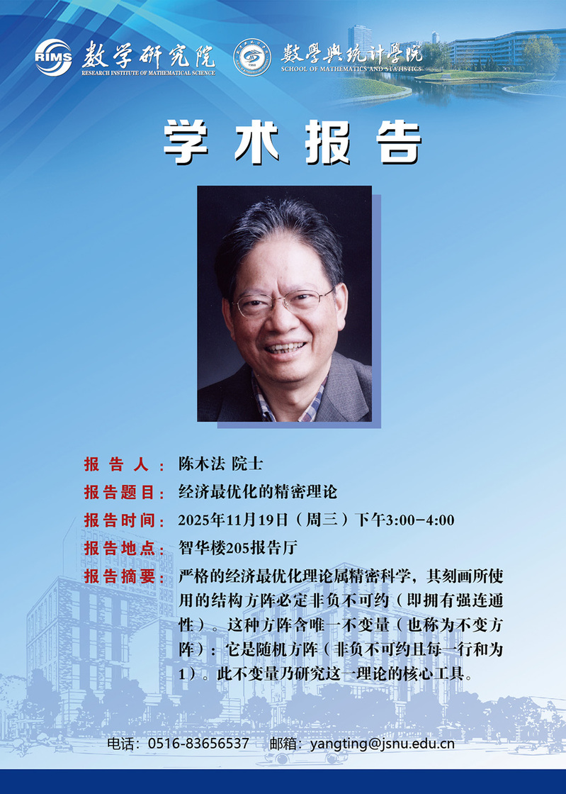 11月19日 陈木法院士学术报告:“数学研究的实践与感悟——选题与攻关”系列讲座(一)