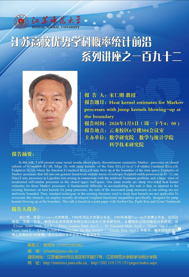 1月5日 江苏高校优势学科概率统计前沿系列讲座之一百九十二